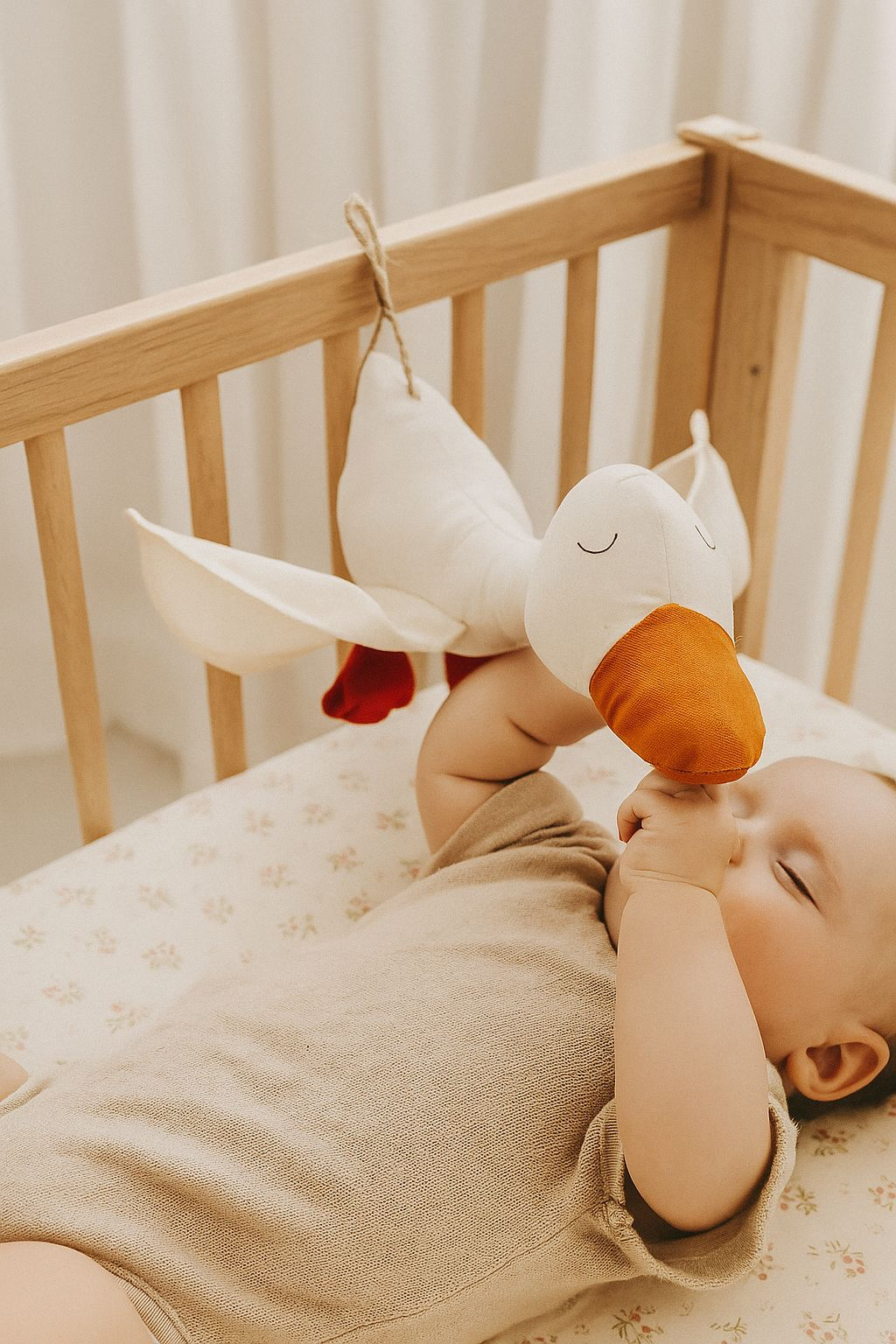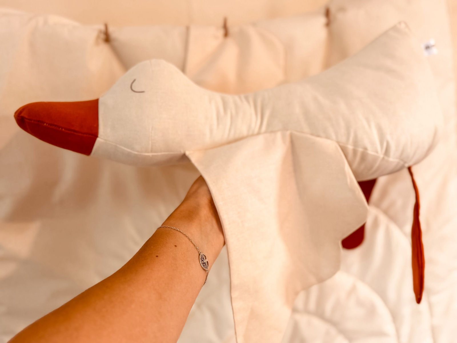 Jucăria noastră în formă de gâscă este un ajutor important pentru ca bebelușul dumneavoastră să se obișnuiască cu antrenamentul pentru somn. Această gâscă drăguță oferă următoarele beneficii, facilitând adormirea bebelușului: