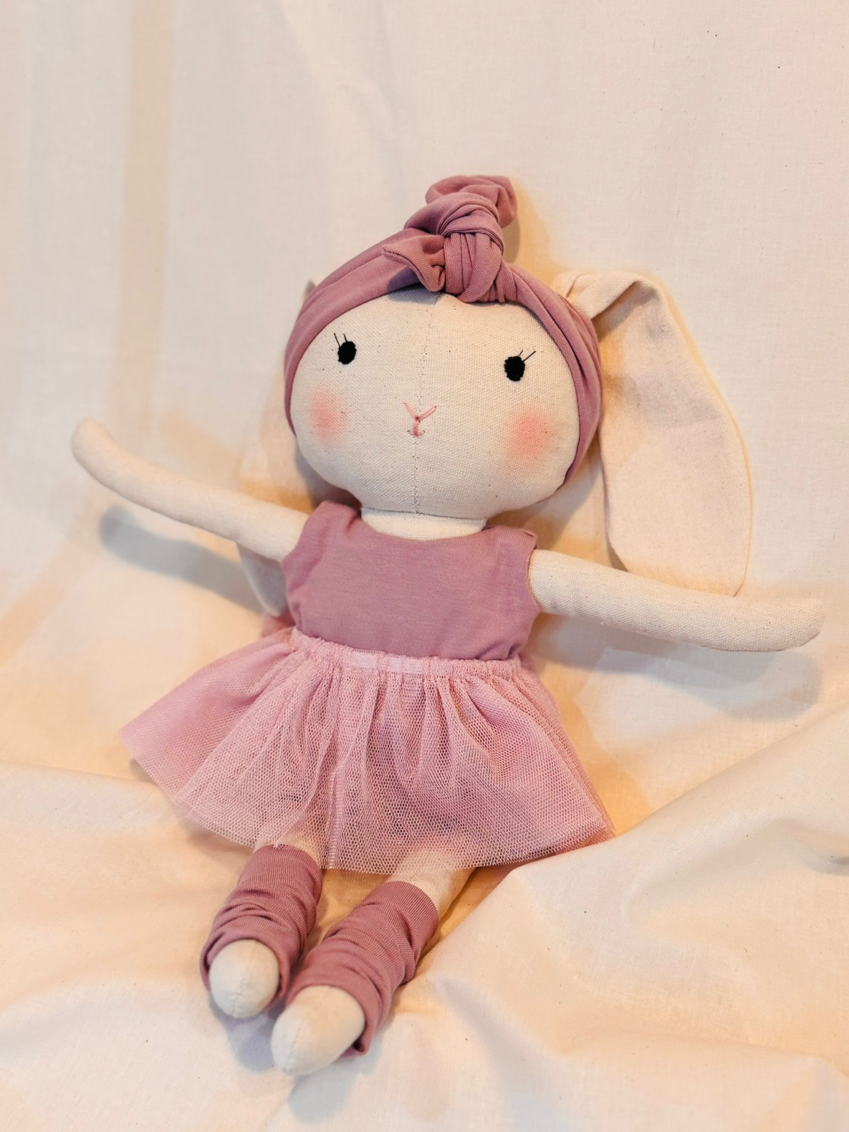 Iepurina Balerina este o jucărie handmade delicată realizată din bumbac moale, cu urechiușe lungi și expresie dulce. Aceasta poartă un costum de balerină și o bentiță asortată, aminintind de grația balerinelor. Detaliile fine, precum obrajii îmbujorați și jambierele cochete îi oferă un aer cald și jucăuș.